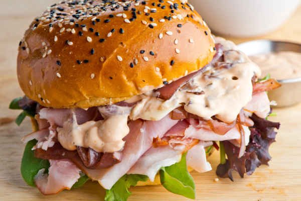 Salsalito, turkey, three pepper Colby jack cheese, lettuce, tomato, jalapenos, and fiery chipotle gourmaise.